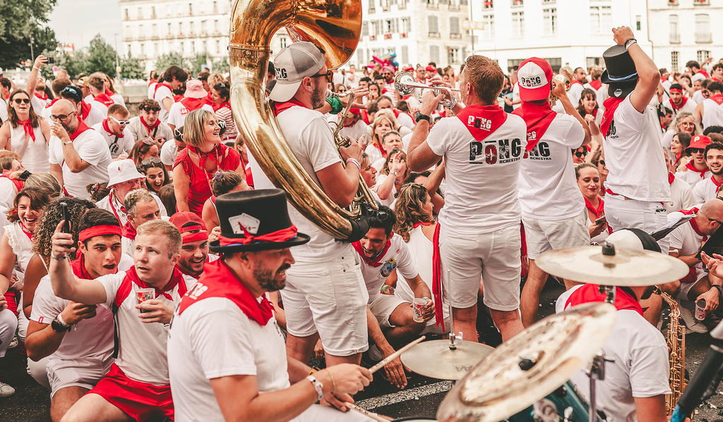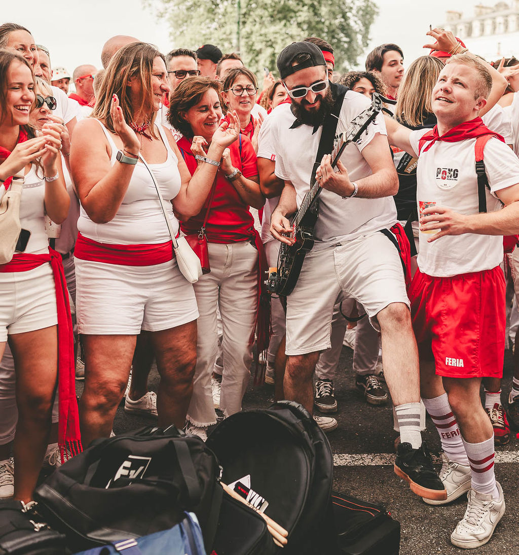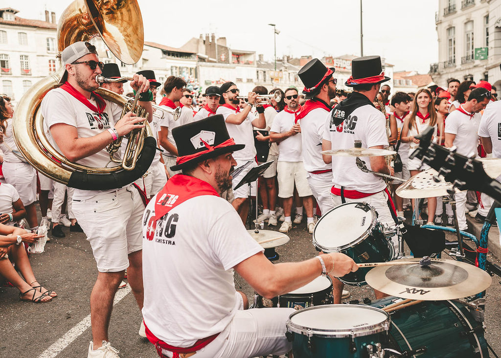 Née à Bayonne, PONG Orchestra est une fanfare de rue pas comme les autres : un mélange détonant où les cuivres se frottent aux riffs de guitare saturée. Douze musiciens animés par l’envie commune de faire vibrer le public, de la plus étroite des ruelles aux scènes des festivals. A chaque prestation, PONG Orchestra déchaîne une énergie brute, festive et fédératrice. La rue explose sous un tsunami de décibels, un mur de son qui se vit autant qu’il s’écoute.